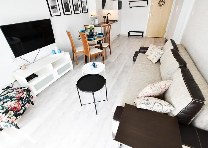 1-pokojowy Apartament Kapitański zlokalizowany jest 5 min drogi samochodem od Morskiego Oka w Kołobrzegu, oferuje widok na miasto. Apartament o powierzchni 40 m^2 oferuje również parking na terenie.